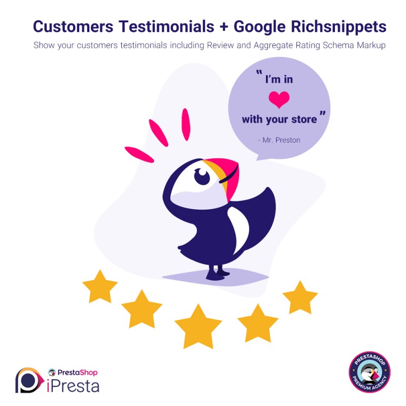 iPresta Testimonials + Google Richsnippets (Schema Markup) module