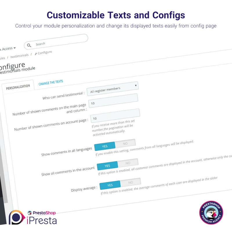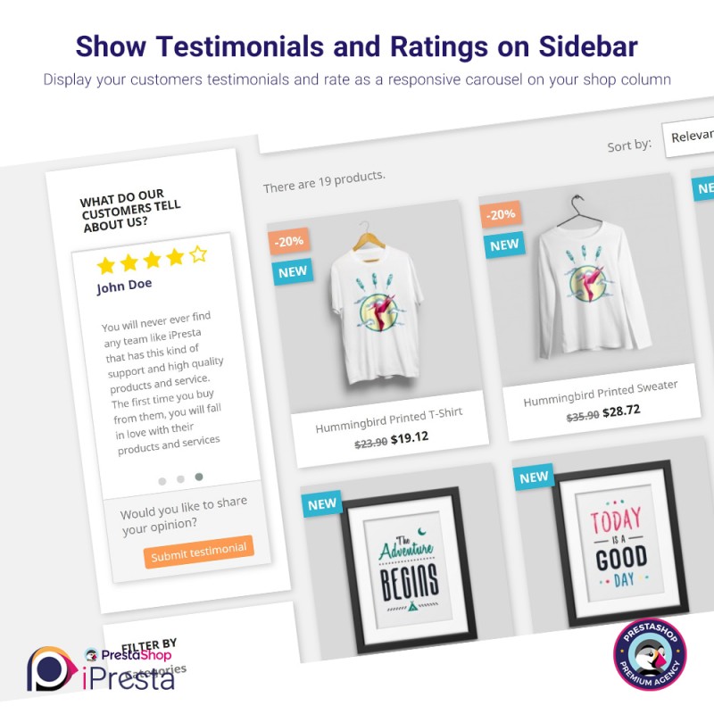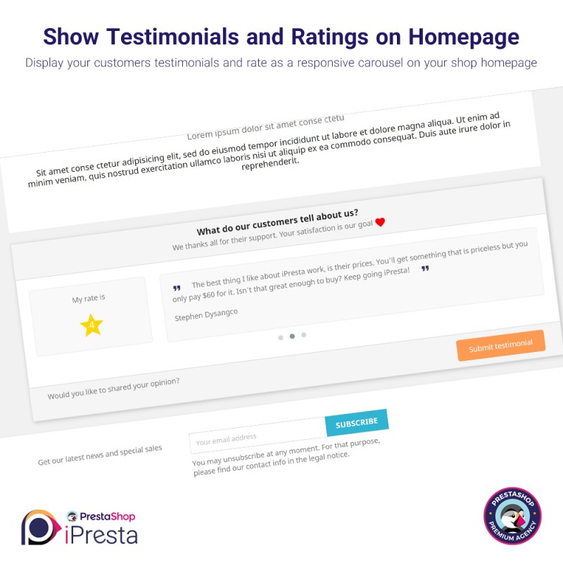 iPresta Testimonials Module features contain: